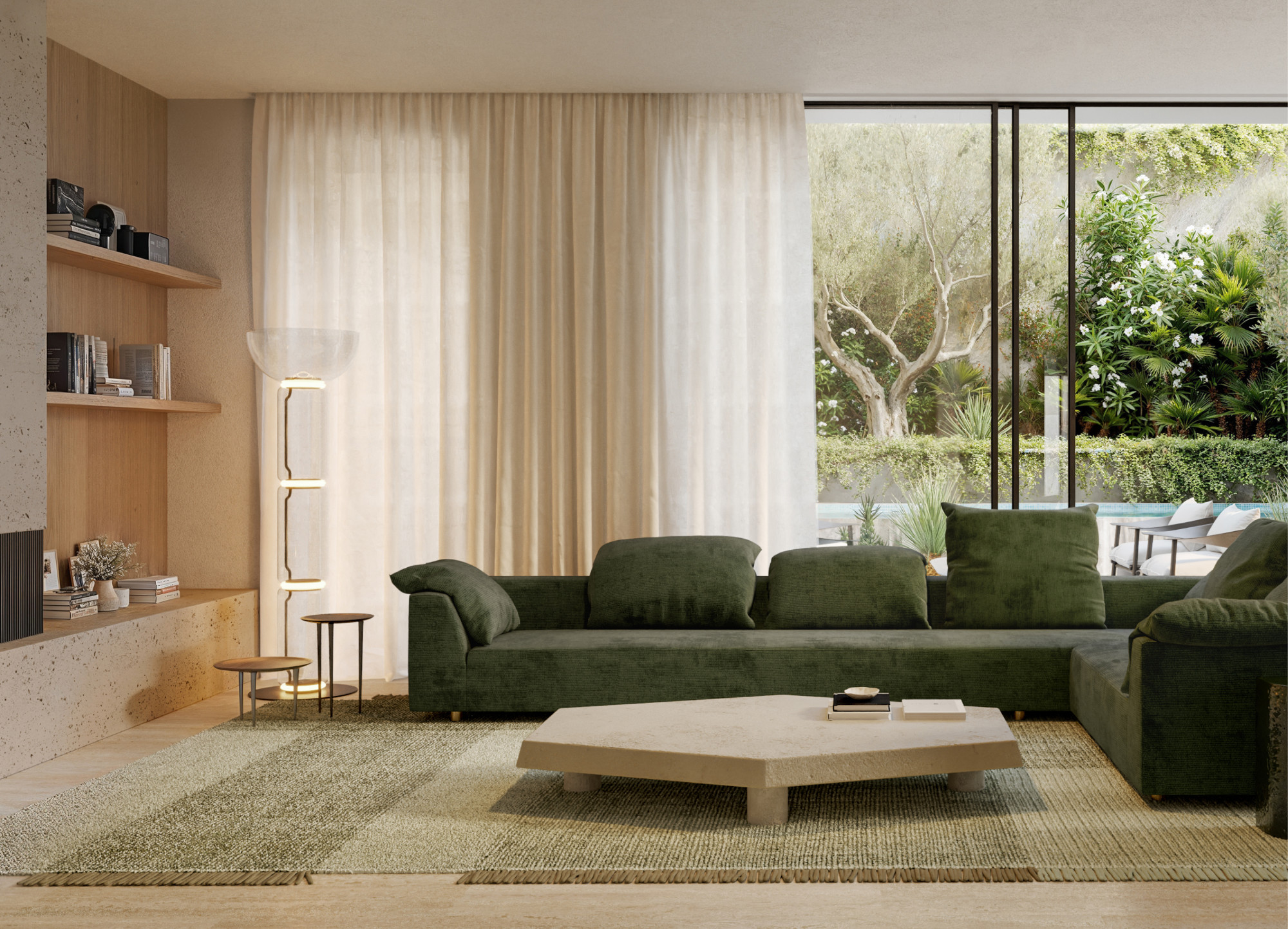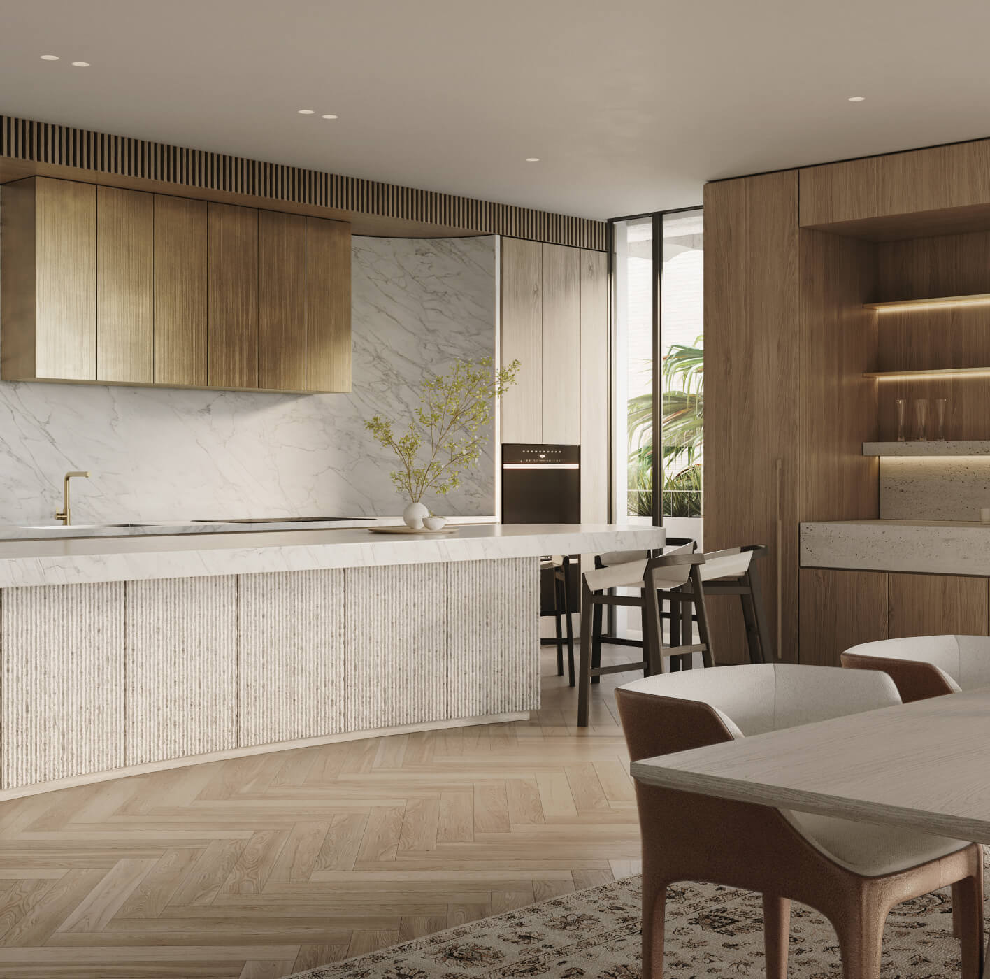 Premium timber, travertine and hard plaster